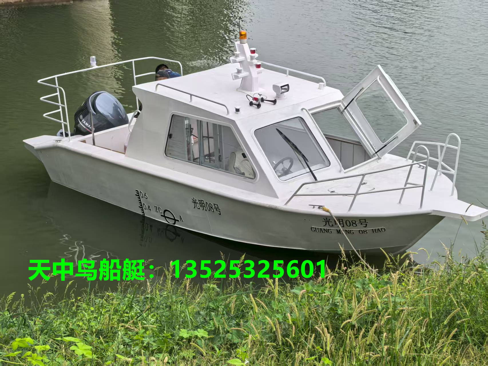 名称:TZN720铝合金半棚快艇 规格:7.2*2.6*1.1 乘员:12人 配机:115-250马力 航速:30-55公里